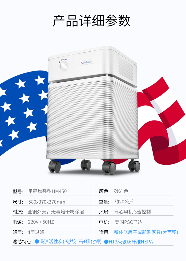 【美國原裝進(jìn)口】推薦辦公區(qū)/大平層/廠房使用 適用中大面積空間 - 奧司汀空氣凈化器HM450