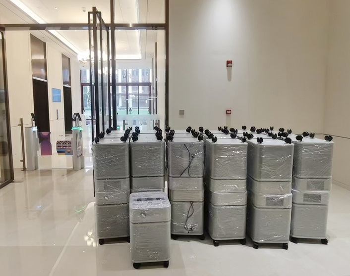上海青浦練秋湖華為研發(fā)中心新搬遷辦公室,味道很大,在網(wǎng)上找到我們奧司汀空氣凈化器,說是以前聽過我們品牌,除甲醛效果好,所以租了幾十臺凈化器來保障公司員工的健康安全。